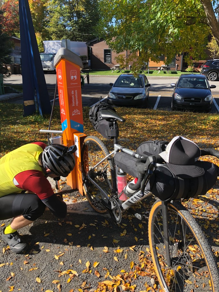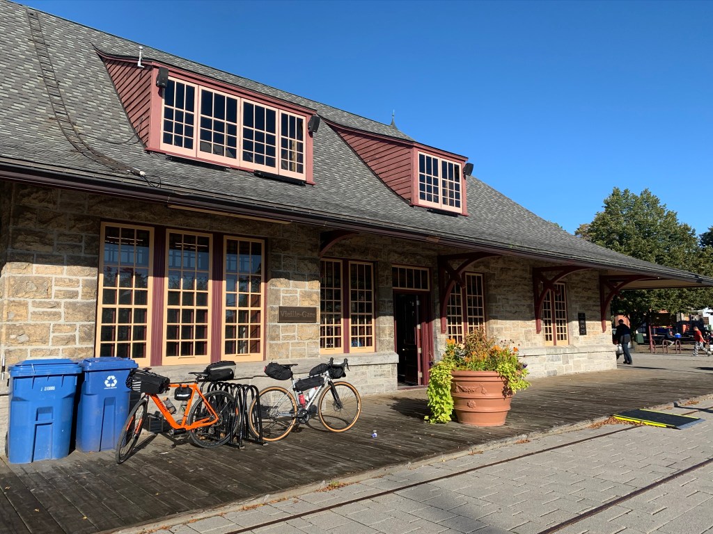 DAY 4: Due to our washout on Day 3, we decided to bike back down the way we came in order to see some of the gorgeous landscapes we zoomed past. The Tremblant area is lovely and we didn’t regret turning back the way we came. At 70KM at La Stazionne, we had some lunch and waited for the Autobus P’tit Train Du Nord to come pick us up and take us back to St Jerome in time for us to get home to Vermont that afternoon. The shuttle service is a great amenity on this trail, allowing for you and your bike to get picked up from any major station along the route. As you’ll see in the photos, the bus has the capacity to carry a very large group of riders at one time.
